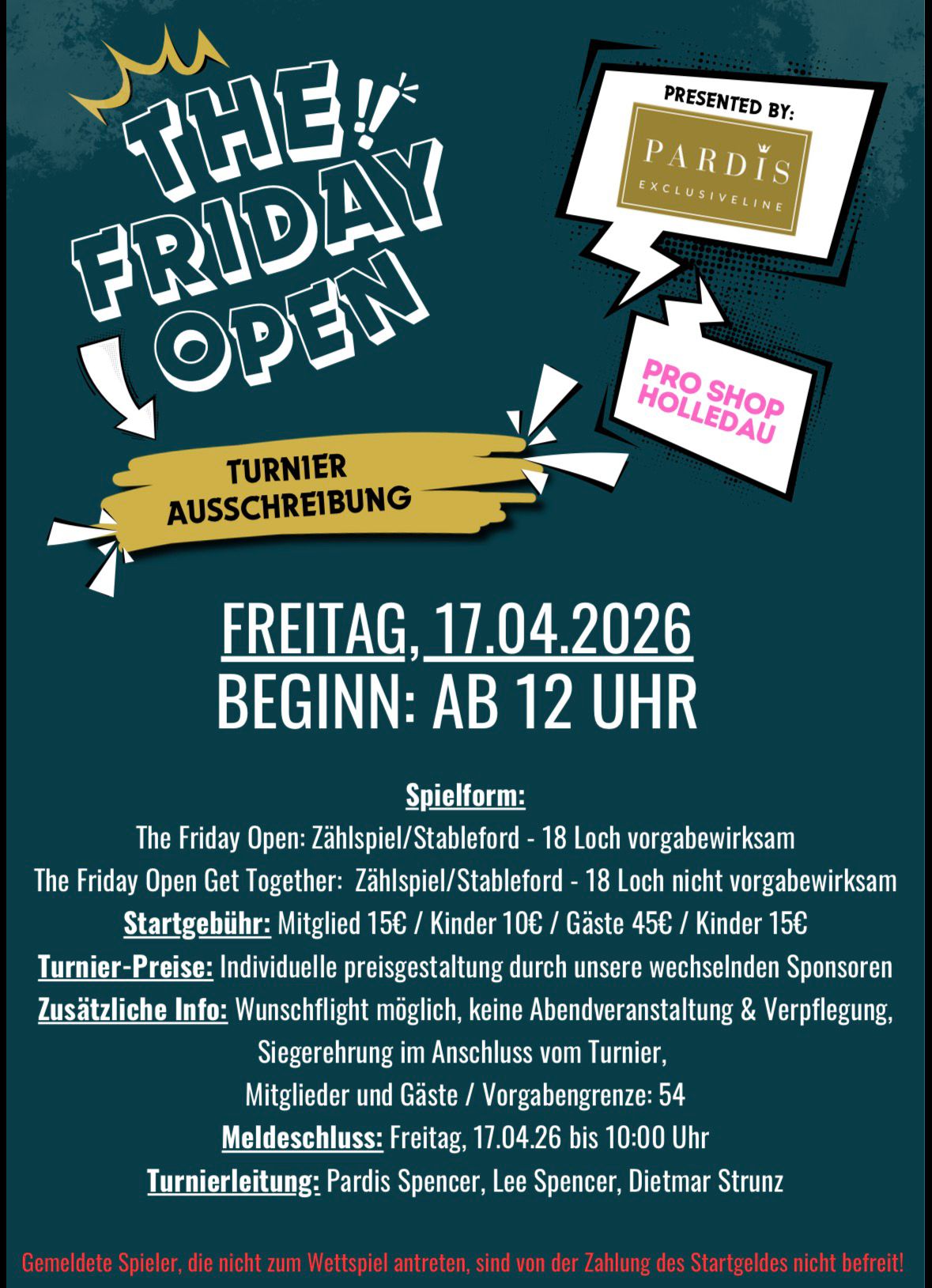 Mit dem feierlichen Auftakt am 17. April startet Pardis Spencer in die neue Golfsaison und knüpft damit an die erfolgreiche Turnierreihe des vergangenen Jahres an. Nach der großen Resonanz und zahlreichen begeisterten Teilnehmern wird das bewährte Format auch in diesem Jahr fortgeführt – mit noch mehr Vielfalt und besonderen Erlebnissen.